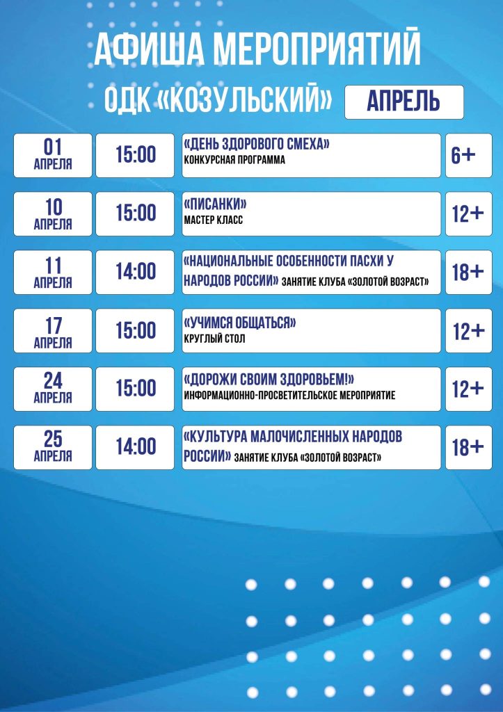 Афиша на апрель